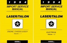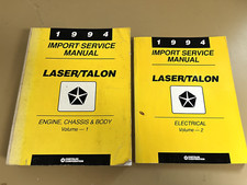 If you need an Eagle Talon Manual to repair your car this used 1994 Plymouth Laser, Eagle Talon Engine, Chassis and Body Volume 1 Service Manual will help you save a lot of money and time on repairs. This factory manual includes the following chapters of information: Introduction and Master Troubleshooting, Lubrication and Maintenance, Front Suspension, Rear Axle, Brakes, Clutch, Cooling, Engine, Intake and Exhaust, Fuel System, Propeller Shaft, Rear Suspension, Steering, Transaxle, Wheels and Tires, Body, Heater and Air Conditioning and Emission Control Systems chapters.