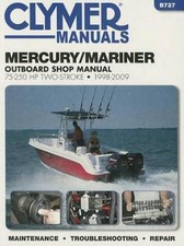 This USED Mercury-Mariner 4-90hp 1995-2000 Outboard Motor Clymer Repair Manual provides detailed service information, step-by-step repair instruction and maintenance specifications for 1995-2000 Mercury-Mariner 4-90hp four-stroke outboard boat engines including 4 HP, 5 HP, 9.9 HP, 15 HP, 25 HP, 30 HP, 40 HP, 50 HP, 60 HP, 75 HP, and 90 HP motors. Includes general information on each model, tools and techniques, troubleshooting and testing, lubrication, maintenance and tune-up, synchronization and adjustments, fuel system, electrical and ignition systems, power head, gearcase, manual starter, power trim and midsection, remote control and complete wiring diagrams. Features 540 illustrated pages.