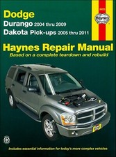 This USED 2004 2005 2006 2007 2008 2009 Dodge Durango 2005 2006 2007 2008 2009 2010 2011 Dakota Truck Repair Manual provides detailed service information, step-by-step repair instruction and maintenance specifications for 2004-2009 Dodge Durango and 2005-2011 Dodge Dakota Trucks.