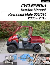 Do you need to service a 2005 – 2016 Kawasaki Mule 600/610 Side by Side? The Cyclepedia Press LLC 2005 – 2016 Kawasaki Mule 600/610 Side by Side printed service manual features detailed black and white photographs and wiring diagrams, complete specifications with step-by-step procedures performed and written by a veteran Kawasaki dealer trained technician.