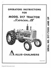 This Allis Chalmers D-17 Series IV Factory Operators Manual is a reproduction of the original out of print manual. This book provides instructions and essential information regarding Operation, Adjustments, etc. , of Allis Chalmers tractors. Close adherence to these instructions will result in successful performance and a longer operating life for your equipment.