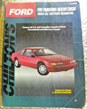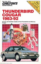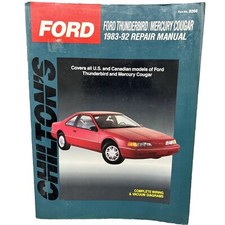 This Chilton Ford Thunderbird Cougar 1983-1992 Repair Manual provides detailed service information, step-by-step repair instruction and maintenance specifications for 1983-1992 Ford Thunderbird/Cougar automobiles.