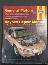 This Chilton GM Lumina Grand Prix Cutlass Supreme Regal 1988-1996 Repair Manual provides detailed service information, step-by-step repair instruction and maintenance specifications for 1988-1996 GM cars including Buick Regal, Chevrolet Lumina, Chevrolet Monte Carlo, Oldsmobile Cutlass Supreme and Pontiac Grand automobiles.