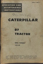 This Used Caterpillar D7 Tractor Operation and Maintenance Instructions Manual covers Caterpillar D7 Tractors with serial numbers 17A1 and up. This operators manual is the manual that came with the vehicle when it was new. It is similar to manual you receive in the glove box of a new car.