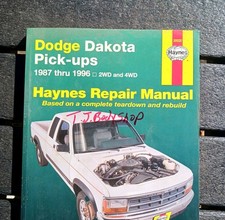 This Used Haynes Dodge Dakota Pickups 1987 1988 1989 1990 1991 1992 1993 1994 1995 1996 Repair Manual provides detailed service information, step-by-step repair instruction and maintenance specifications for all 1987-1996 2 and 4 wheel drive Dakota pick-up automobiles. Includes vehicle identification numbers, information about buying parts, maintenance techniques, tune-up and routine maintenance tips, engine repair and overhaul procedures, cooling system, heating system, air-conditioning system, fuel system, exhaust system. engine electrical systems, emissions control systems, transmission, transfer case, clutch, driveaxles, brakes, suspension, steering systems, body, chassis and electrical system. Features complete wiring diagrams.