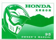 This Used Honda 1995 XR80R Factory Owners Manual is the original factory issued owners manual. It includes all the information you need to to have a basic understanding of the operation of your 1995 Honda XR80R motorcycle. Provides important safety information, service and maintenance schedules, storage information and recommendations for appearance care. This book includes technical information, instructions for routine maintenance including oil change information, as well as a basic troubleshooting guide. This is a must have item if you ever plan to sell your 1995 Honda XR80R motorcycle- prospective buyers will often want to know if you have the original manual.