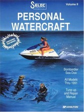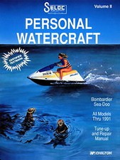 This Used Seloc Sea-Doo Personal Watercraft 1988-1991 Repair Manual Vol ll provides detailed service information, step-by-step repair instruction and maintenance specifications for 1988-1991 Sea-Doo/Bombardier Personal Watercraft models. Includes 264 illustrated pages. This book is based on an actual teardown of the equipment. It provides complete coverage on everything from basic maintenance to engine overhaul, featuring simple-to-follow, step-by-step, illustrated procedures, hundreds of exploded drawings, photographs and tables, a troubleshooting section and accurate specifications and wiring diagrams.
